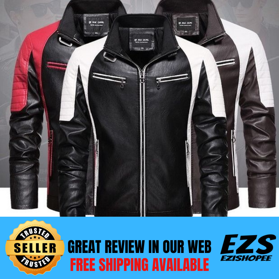Postage Frm Mlysia Men S Pu Leather Jacket Outerwear Motorcycle Windbreaker Jaket Motor Jaket Pu Murah Jaket Murah Motor Shopee Malaysia
